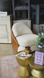The Toro Roundabout Chair combines modern comfort with a minimalist design. Its plush, textured white bouclé fabric exudes coziness, while the contrasting smooth brown base provides a sleek, contemporary finish. Designed with a low-profile silhouette and generously padded seat and back, this chair offers an inviting seating experience. Its soft, rounded shape and supportive cushioning make it a perfect addition to living rooms, reading nooks, or bedrooms.